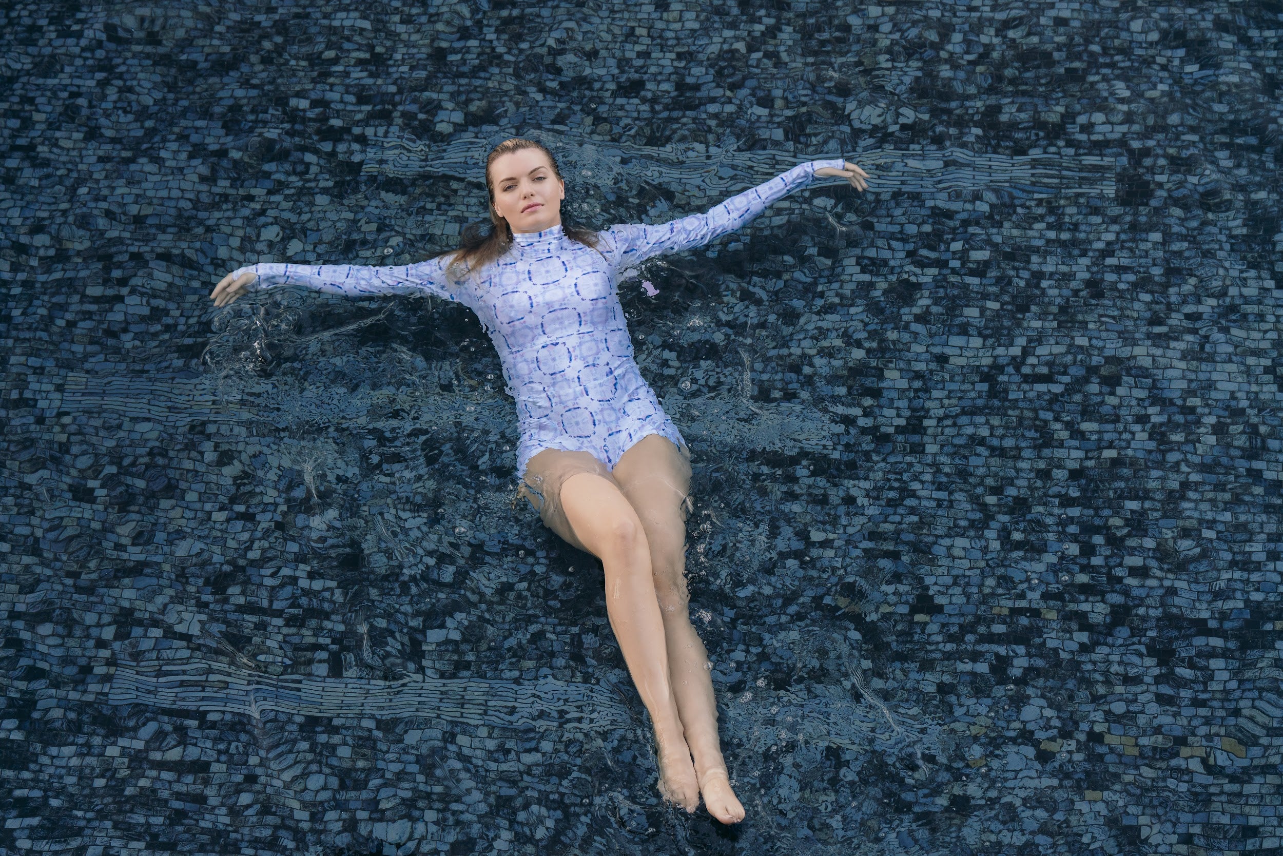 Anne is wearing a custom suit, Paris is wearing our Aqualung Classic Long Suit and Lily (of Emily In Paris) is wearing our Classic Long Suit in our Galaxy pattern.