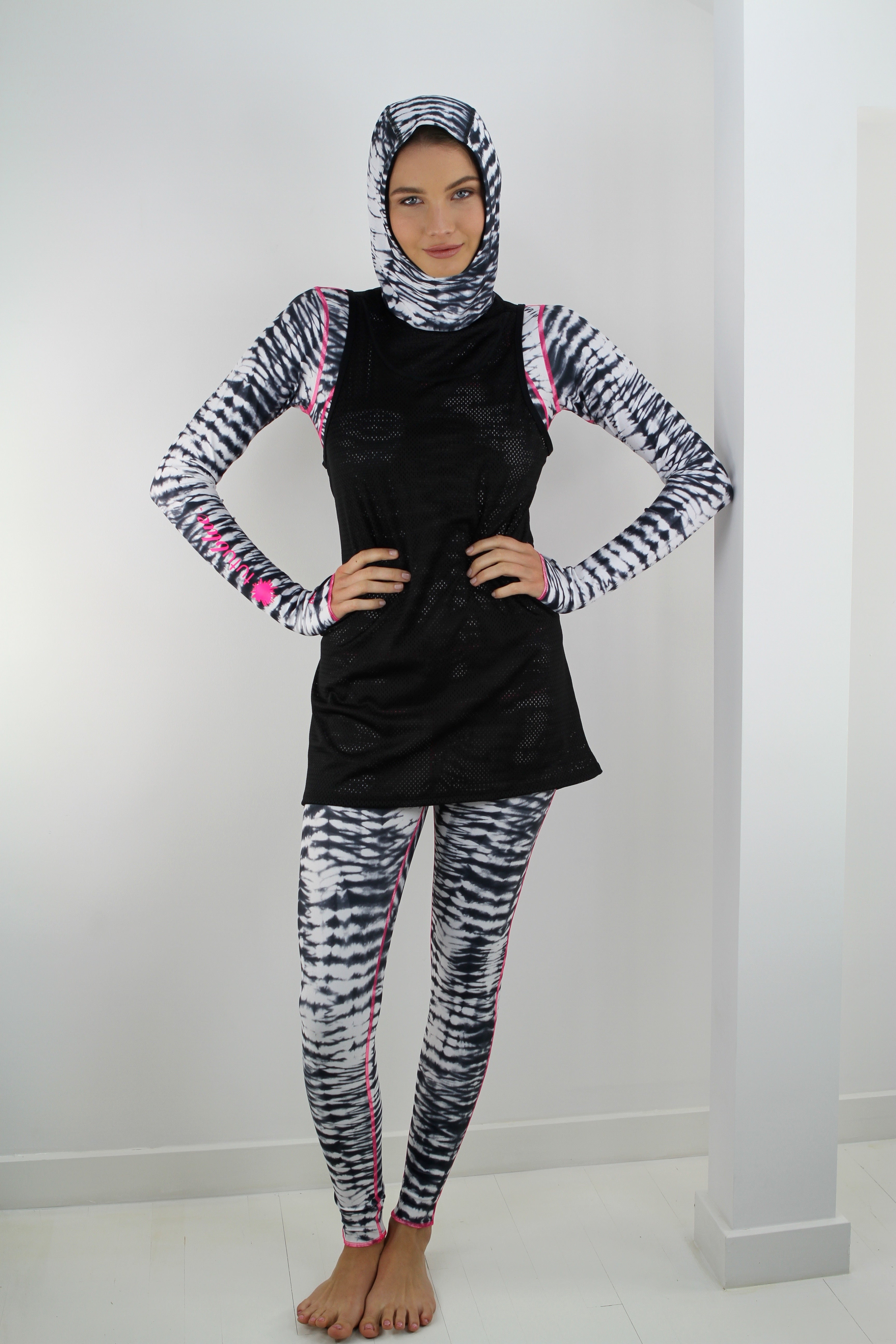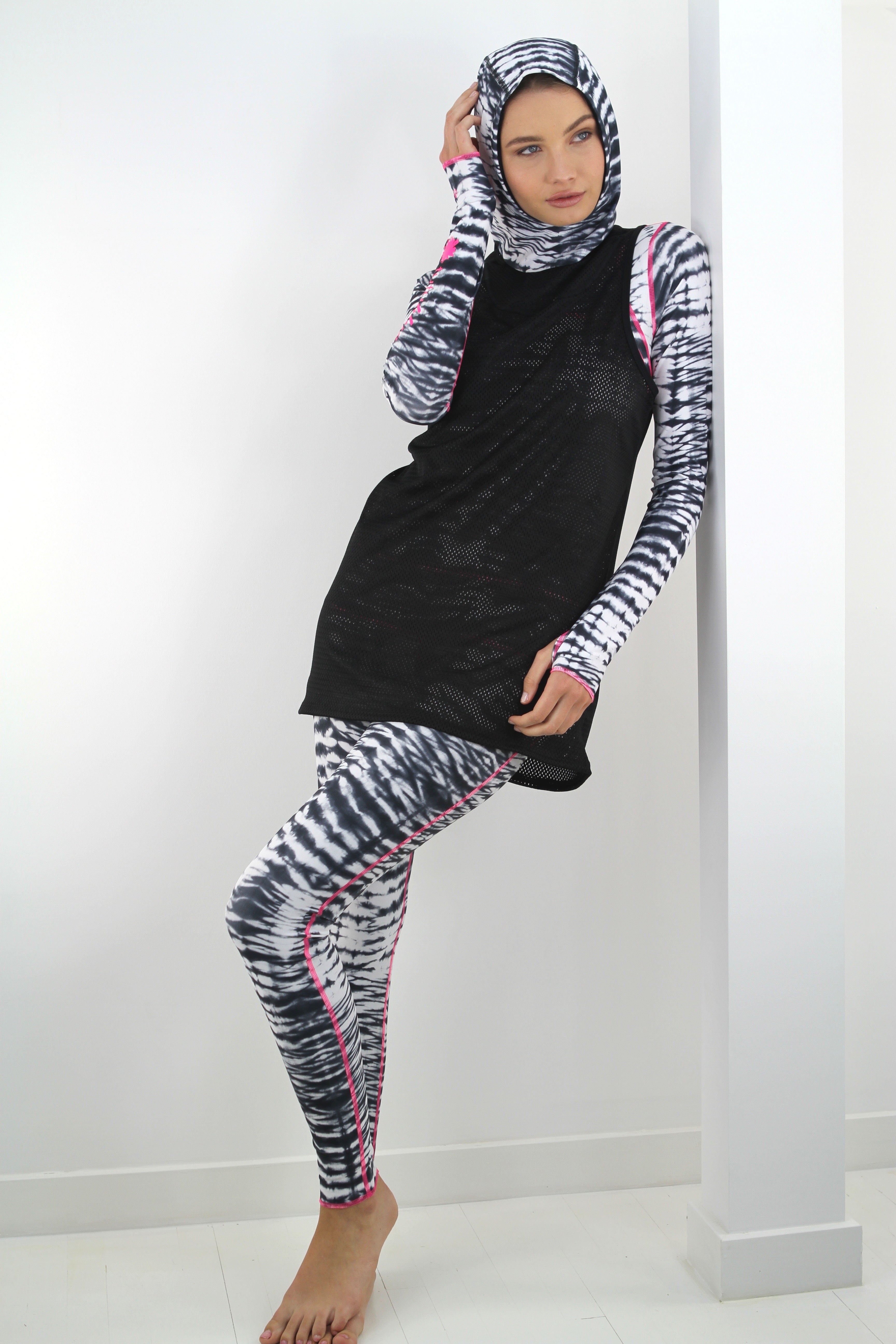 Black and White Hooded Mesh Tank