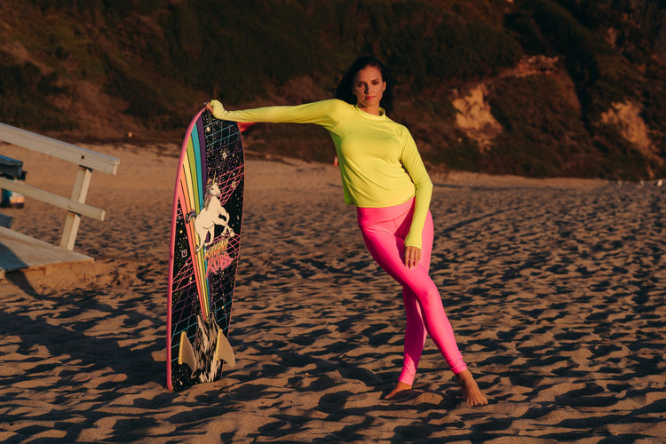 Wear them swimming, paddle boarding, running, lounging, running errands, to a yoga class…these leggings can do it all. With their stretchy and quick dry fabric, you can do just about anything in just these one pair of leggings! Style it with one of our 4 types of rash guards for full body sun protection.