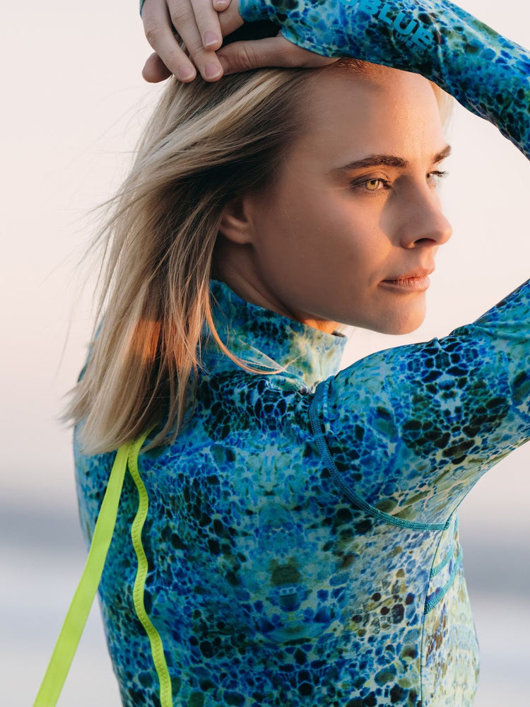 Known as our most protective suit, and full body rash guard, our Classic long swimsuits feature a high collar, thumb holes, and full arm, chest, and back coverage so that you’re free to stay in the sun all day without worry! With our Quick Dry Tech and 4-way stretch, you’ll be ready for any activity both in and out of the water. Plus, use the long zipper in the back to quickly change into your suit! We recommend sizing down as our suits run large.